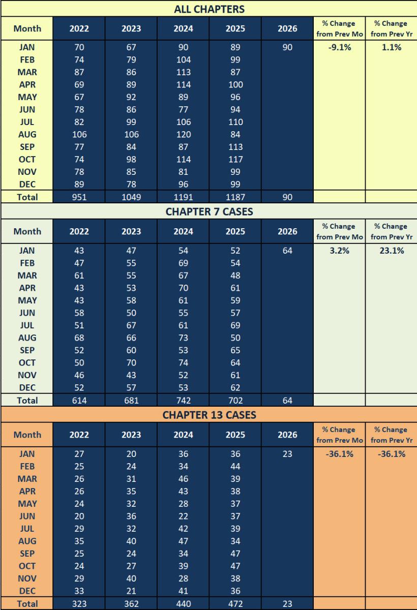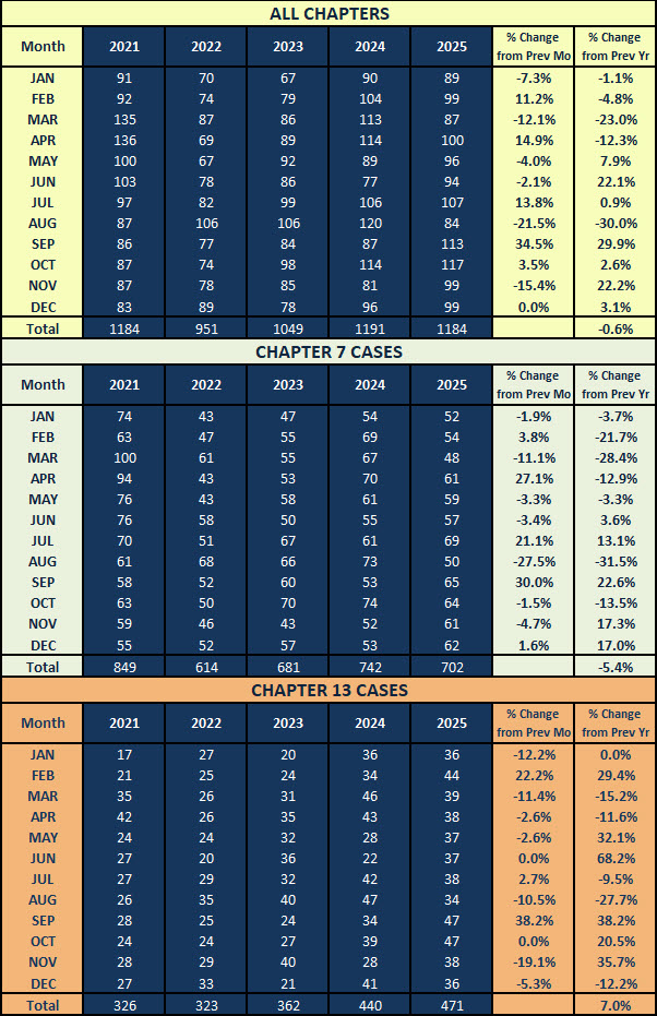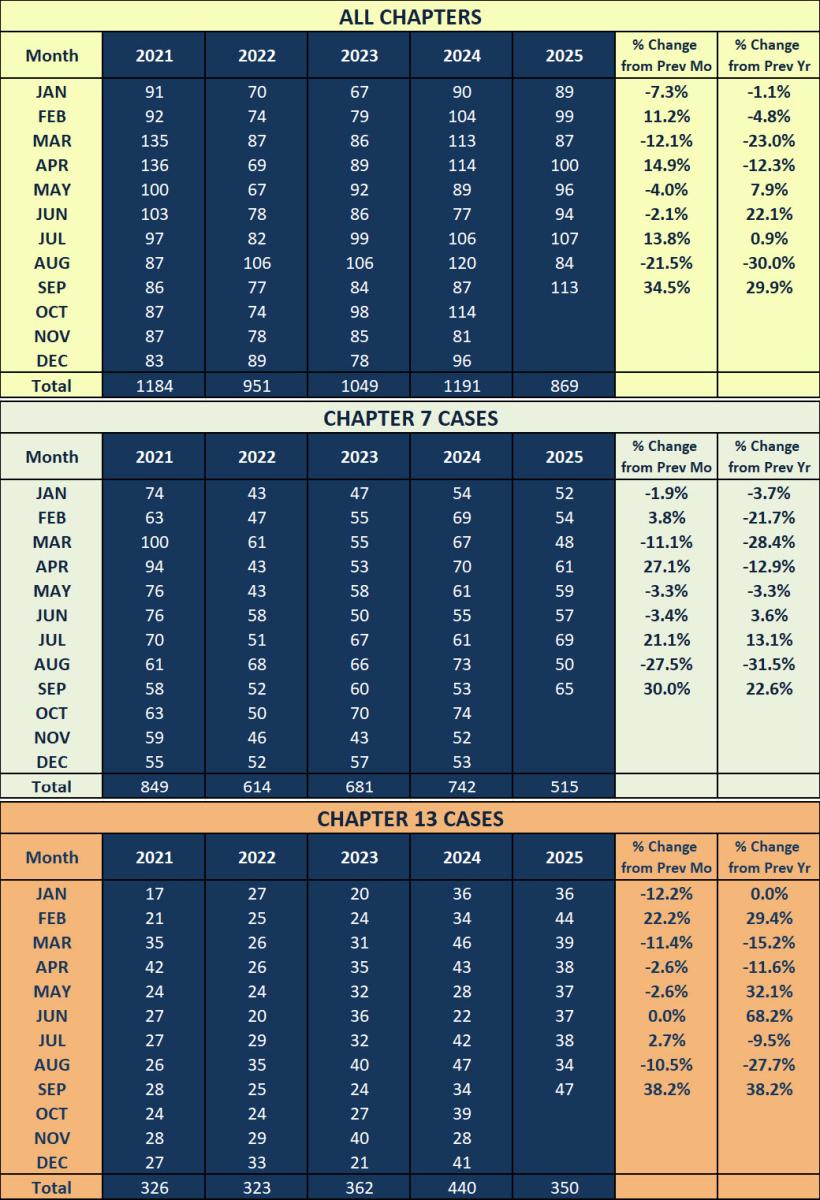 Current Monthly Statistics (All Chapters, Chapter 7 Cases, Chapter 13 Cases)